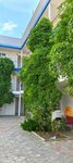 Выбираем эту гостиницу не в первый раз. Чисто и уютно. Есть кухня на первом этаже. Оборудована плитами, раковинами, микроволновой печью. На кухне есть вся необходимая посуда ( тарелки, кружки, сковородки, кастрюли, ложки, вилки, ножи) несколько раз меняют бельё и полотенца. В номере холодильник, кровати, кресла , тумбочки, шкаф, столик с зеркалом, кондиционер и ванная комната ( душ, раковина и туалет). Стиральные машинки. На улице оборудована летняя веранда со столами и стульями. Трехэтажное строение с балконами( есть стулья на балконе) во дворе есть мангал. Розы и зеленые насаждения. Есть зона для маленьких детей( ковер, игрушки, велики). Хозяин молодец, на территории просит вечером не шуметь. Море близко. Рядом магазины и кафе. Есть места для парковки автомобиля. Спасибо, будем приезжать только к вам!