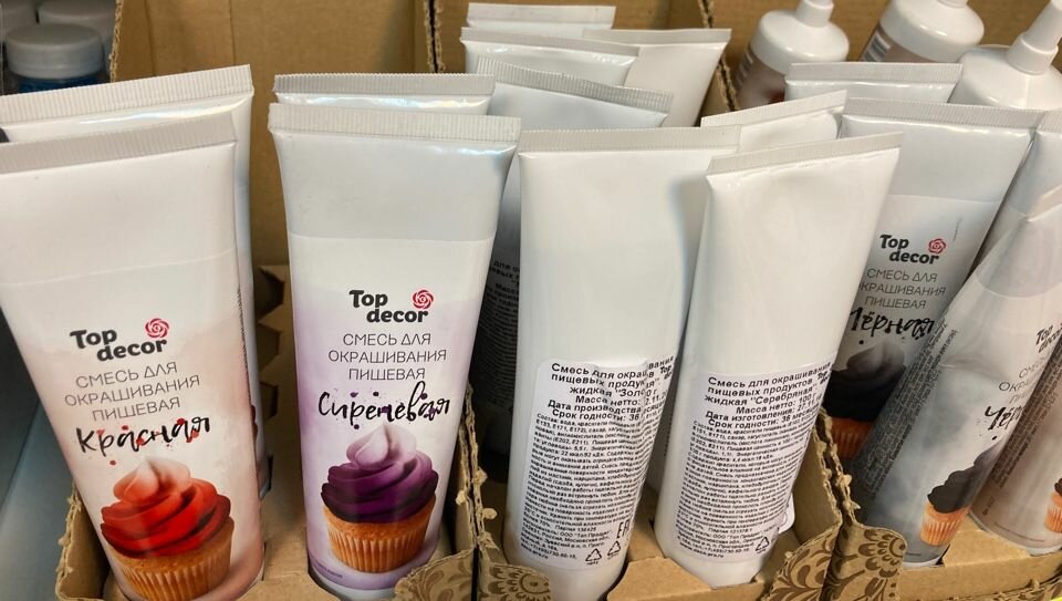 Отличный выбор всего, что необходимо для кулинара. Есть и упаковка и сливки и декор. Можно сделать печать на сахарной бумаге