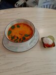 Пробовали сырный супчик и суп с говядиной. Оба блюда очень понравились. Блины с бананом были очень жёсткие, резались ножом с трудом.