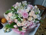 Прекрасный букет оформили дистанционно, по ватсапу. Живу в другом городе и хотела на день рождения маме сюрприз устроить) сюрприз удался) оформили с доставкой домой. Ещё попросила купить тортик за отдельную плату, сделали, за что им большая благодарность! Все розочки свеженькие! Благодарю за то, что продаете красоту!