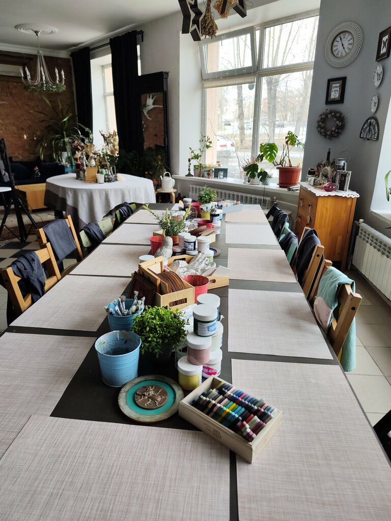 Уютное ламповое пространство, потрясающие люди, потрясающее место , ходили на мастер класс - рождественский венок из натуральных хвойных веток. Очень понравился мастер класс ребенку ,отдельное восхищение вызвал у нее преподаватель , все с душой и добром , обязательно вернемся еще , спасибо большое за позитивные впечатления!
