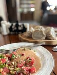 Красивый ресторан, кухня отличная! Хинкали для настоящих голодных мужиков - тонкое тесто с начинкой размером с бабушкину котлету. Борщ идеальный, а про хачапури вообще молчу - это произведение искусства. Впервые пробовал хачапури из нежного слоеного теста, очень вкусно. Единственный минус - официант Карен, от которого сильно пахло несвежей футболкой. Плюс нулевое обслуживание. Тарелки не менял и вообще постоянно где-то зависал, хотя ресторан был полупустой. В целом к интерьеру и кухне вопросов нет, а вот обслуживание нужно подтянуть. Звезду снимать не буду из-за уважения к поварам
