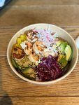 Порция сытная, но креветки были явно пережарены. Еще почему-то на дне было очень много масла, никогда такого в поке не видела…