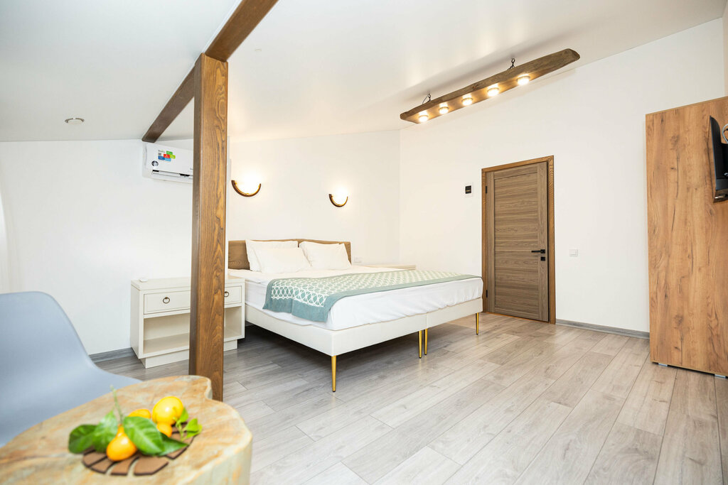 We rested in the guest house from 07/19/24 to 07/31/24 The guest house is in a great location, there is everything you need nearby: shops, a pharmacy, many cafes and canteens for any request. The sea is nearby (2 minutes), the beach is wide with a good comfortable approach. There is a place to walk in the evening and have an interesting time. There are 5 people in our family, we rented two rooms - double and triple. We really liked the guest house. The rooms are clean, everything is very comfortably done, all the little things are taken into account. It is clear that a lot of work has been done. Responsible approach in everything. All appliances are working (air conditioning/TV). The rooms are clean and freshly renovated. Very comfortable bathrooms. Clean, pleasant, very good quality linen. There is a well-functioning Internet connection. The territory is green and well maintained. The shared kitchen has everything you might need. There are places to relax (eat, sit, relax). Umbrellas and towels can be rented at the guest house for a hike to the sea. Special thanks to the hosts. Professional attitude to your business. Individual approach to each question and guest. People love what they do, they do everything to make guests feel at home. We were charmed by the place and the people, it was incredible luck to find and choose this place for our vacation.