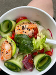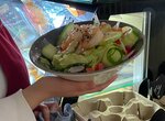 Приехали посмотреть город, сплавиться на сапах по реке и покушать в береговой кафешке. Ожидали пиццу 30 минут в субботу!!! 30 минут! Стояли ждали с ребёнком. Подача очень неожиданная и так лучше не делать, не издевайтесь над пиццей (фото прилагаю)!!! Нафига ребят вы так кромсаете ?! По факту много кусков без корочки и брать и держать в руке невозможно! Очень много нарезанных корочек. Зачем так делать?! Сама пицца тоже не понравилась. Горелые корки Начинка так себе. Королева, если не ошибаюсь. Так же впечатлила (в плохом смысле) микро порция «на вынос» салата с креветками, официантка держала аналогичный салат в тарелке и это абсолютно разные порции!!! Очень обидно и неприятно, но обнаружила это уже выйдя и расположившись поодаль от кафе. Сфоткала салат в тарелке, чтобы потом оценить и написать хвалебный отзыв на салат, но нет, ребят, благо сфотографировала ту порцию и сравнила в контейнере «на вынос». Слов нет. Можно сравнить порцию в тарелке и мою «на вынос», в которой по факту почти не было салатного листа и это была мини версия, но за те же деньги, что и в тарелке. Салат вкусный, за это + Могу сказать одно-Недобросовестные.