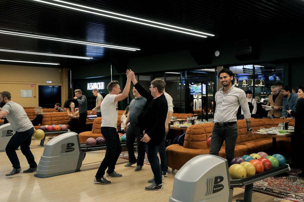 Посещение боулинга — это отличный способ снять стресс, получить заряд позитивных эмоций, физическая разминка и прекрасное времяпрепровождение с друзьями или семьей. Впечатления обычно включают азарт от игры, радость от страйков, комфорт атмосферы и качественное обслуживание дорожек-это все Лебовски!!! все было отлично,пиво холодное 😁 чай горячий ,пицца вкусная ,и ребенку понравились пряники в виде кегли 🎳🎳🎳 все отлично,прекрасно провели время 😎😎😎ещё вернёмся!!!! Даже ковры на полу в стилистике фильма ,класс!!!