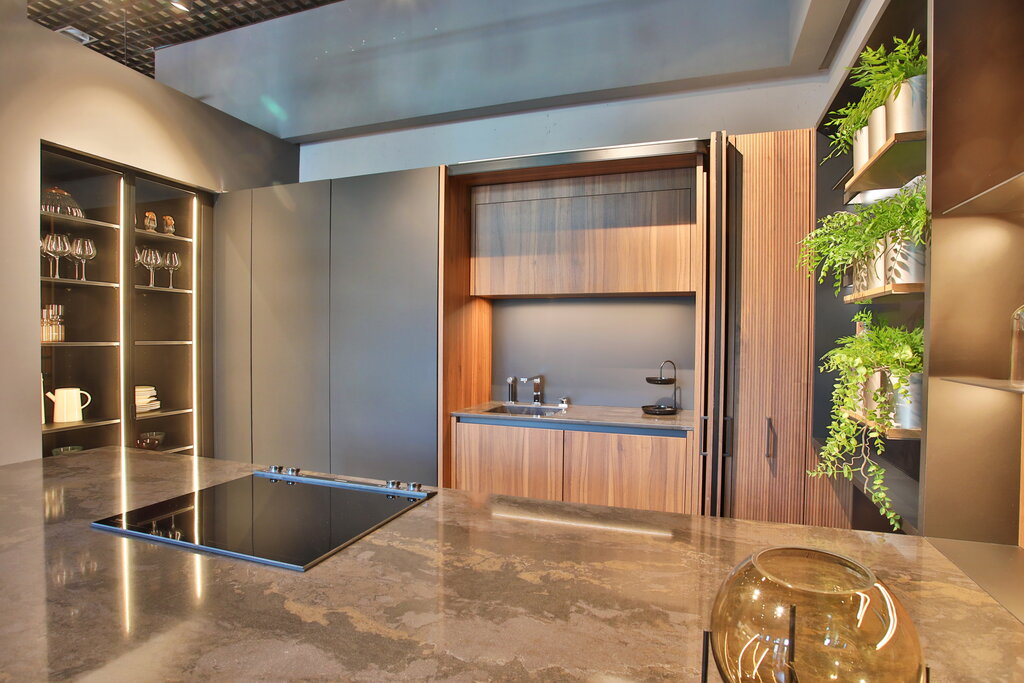 Очень профессиональная выставка кухонь. Есть все образцы материалов. Дизайнеры удивили знанием мелких, но очень важных деталей при проектировании кухни. Оказывается, если ставишь индукционную плиту, то между ней и столешницей, должен быть вентиляционный выпил, в тумбе!!!