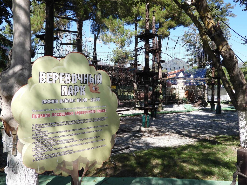 Небольшой веревочный парк недалеко от набережной, любителям полазить и детям будет достаточно интересно. Рядом расположены аквапарк, мастерская стекла, крокодиловая ферма. При желании полазить, стоит посетить.