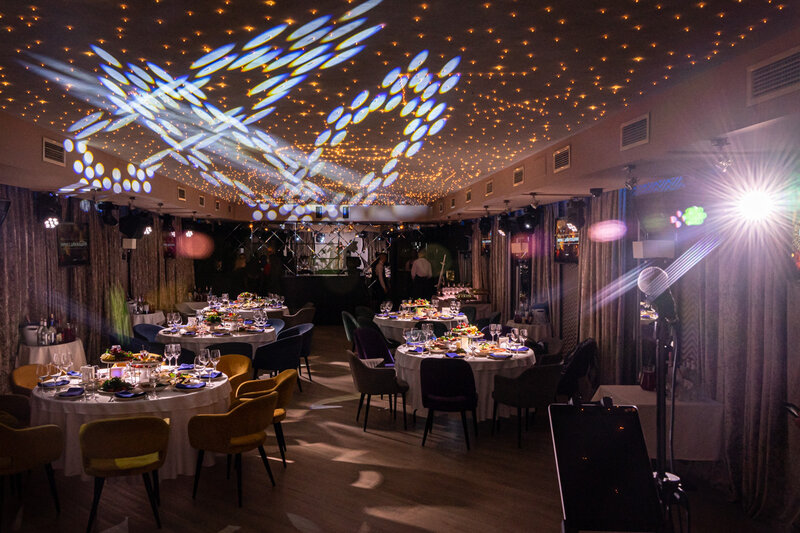 Окунитесь в атмосферу качественного звука, лучшей атмосферы и непревзойденного отдыха! Залы с легкостью трансформируются в "Банкетные" для любого мероприятия. Банкетная рассадка до 70 человек, фуршетная — до 100 человек.