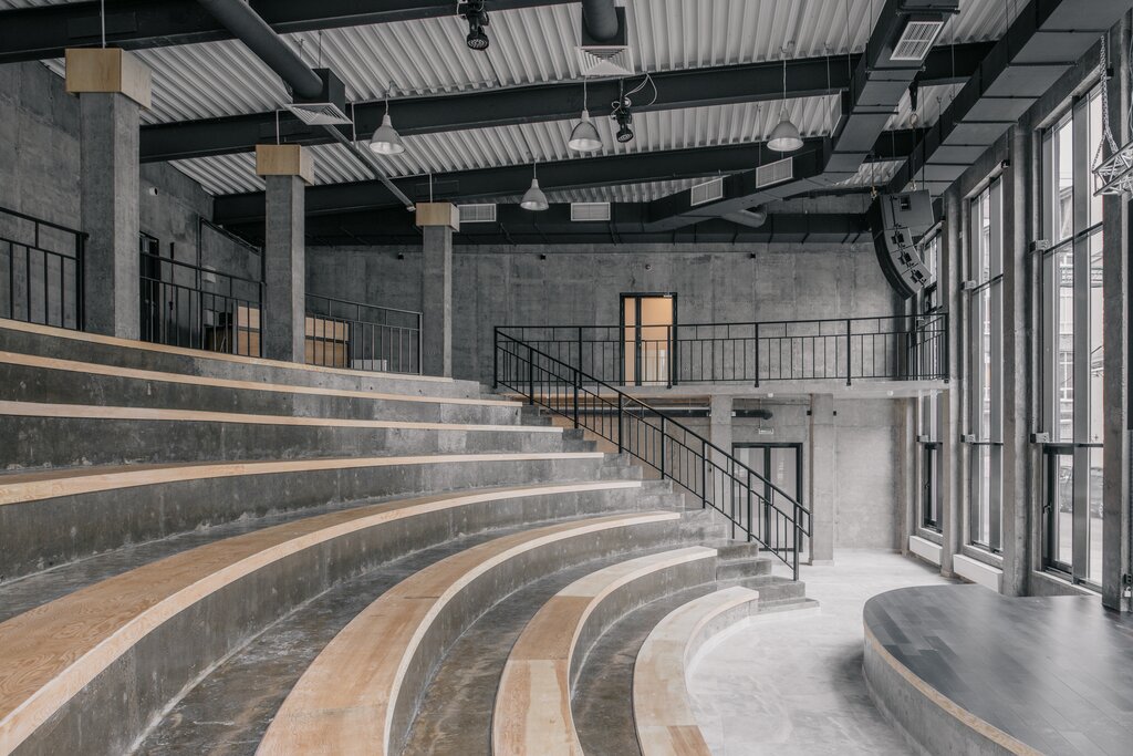 Зал 88 м² с естественным освещением. Оборудован экраном, лазерным проектором (световой поток 6500 люмен), двумя микрофонами, подходит для проведения деловых мероприятий, лекций, мастер-классов. До 80 человек.