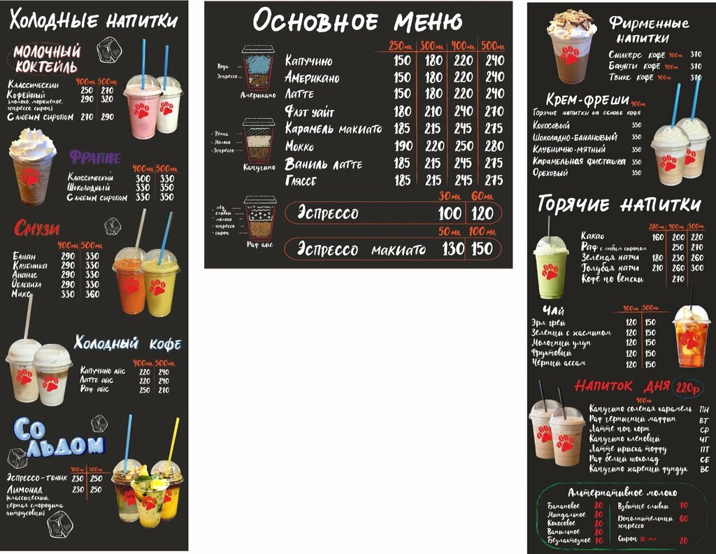 Price cup cappuccino:75–120 ₽