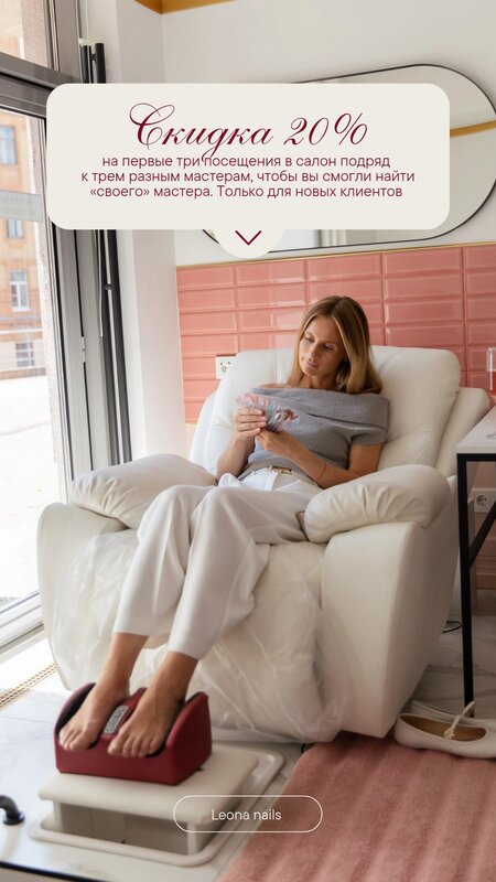 Искала конкретно услугу маникюра и педикюра в 4 руки, так как с маленьким ребенком много времени нет свободного. Девочки справились за 40 минут при этом качество на высоте! Удобные кресла, приятная атмосфера! Спасибо, приду еще!