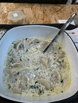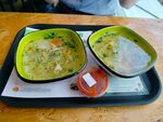 Так себе заведение. Столы можно было бы и протирать, посуду за ушедшими убирать побыстрее. Порции небольшие, суп подали теплый, а не горячий. Равиоли банально не вкусные. Может конечно надо было классические пельмени заказывать... Больше туда не пойдём.