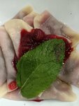 Умопомрачительные сырные пельмени с соусом песто, я чуть не сгрыз ложку вместе с ними! Классика жанра свинина-говядина тоже очень вкусная. Жаль, желудок больше не вместил.Пойду ещё раз.И ещё раз. И ещё много-много раз!