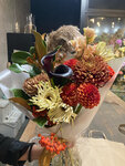Удивительная атмосфера, чудесные сотрудницы (приветливые, чуткие, талантливые). Пока собирают букет, можно подивиться на интерьер с кучей любопытных деталей. Порадовали совпадающие взгляды на всё, даже на упаковку. Рекомендую, если вам нужно что-то живое и с характером, а не букет из сотни скучнейших роз с пышным бантом.