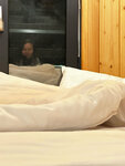 Отдыхали в 17м домике с сыном. Имеется все для комфортного отдыха, а главное природа и чистый воздух, баня, за которыми мы приехали. Лучше приезжать вовремя к часам заезда 15:30 чтобы сориентироваться на местности, тк связи мобильной и интернета в лесу нет, пока не подключиться к вайфай в домике. В целом вся эта связь на нужна, но найтись как-то нужно, когда первый раз можно и покружить по поселку типовых домиков, присмотреть разные вариантов домов побольше.Баня-бочка оправдала все надежды, стабильный пар держался 3 часа, дальше мы ушли, но думаю нам подбрасывали дрова снаружи. Попали под свежий снег и даже позакалялись! Busel ресторан рядом неплох, вкусная еда, порции умеренно-маленькие, цены московские, но для ужина в день приезда, если не запланированы шашлыки и др домашняя еда, нормально. Для полного расслабления всего хватило, желательно приезжать хотя бы на пару дней, сутки по сути неполные, выезд уже в 11:30 и чтобы не бегать туда-сюда, а именно насладиться тишиной, заняться любимыми делами лучше приезжать наподольше. Благодарна девушкам сервиса бронирования всегда были на связи до, во время и после приезда. Это отличный сервис, продолжайте в том же духе! Для крупных компаний и семей стоимость бани вполне сносна, если ехать с ребенком, то получается дороговато 4 тыс, мы приехали со своим березовым веником и баню поручили в подарок 🎁 попав под акцию последней недели декабря ; пусть не стационарную, но бочка была отличной. Хотелось бы чтобы подумали о системе скидок для постоянных клиентов, с прозрачным ценообразованием. Мы с удовольствием ими станем и будем ехать даже 3,5 часа во Владимирскую область к вам! Желаю вам процветания и много-много счастливых посетителей, способных оценить все ваши усилия чтобы отдых получился действительно незабываемым !🖤
