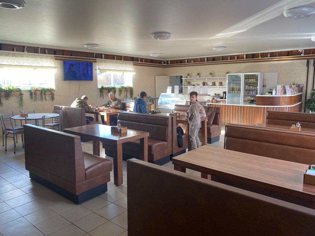 Суперское место!!! Рекомендую 100000%, в дороге остановиться покушать отлично. Чуть дальше от основных магазинов, поэтому тихо, спокойно, есть туалет, чисто, музыка и красивый интерьер. БЕЗУМНО вкусная еда — брали борщ, суп с фрикадельками, печень с пюре, котлеты с гречкой, обязательно попробуйте салат "лесная полянка", с грибочками сверху) потрясающе вкусно и недорого!