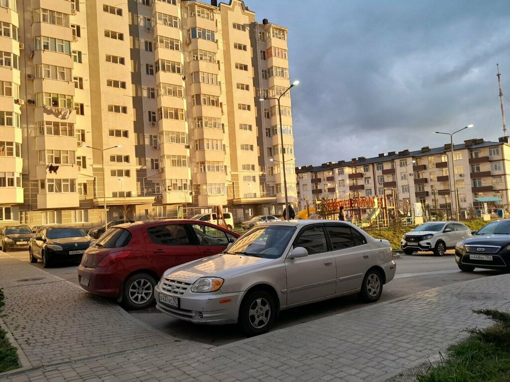 Есть парковка, есть детская площадка, двор проходной. Сильные ветры постоянно, но великолепные виды. Магазин в комплексе, в соседнем ЕдаВода, рядом автосервисы, транспорт ходит- в общем неплохо )))