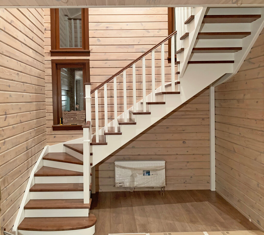 Недавно делали капитальный ремонт загородного дома и меняли лестницы как на второй этаж так и в подвал.В подвал выбрали обычную, классическую лестницу с сосны. А вот на второй этаж, долго выбирала, хотелось что то необычное, тем более территория комнаты это позволяет))) Остановились на лестнице с дума с 90 градусным поворотом. Хочу отметить, что мастера асы в своем деле,работа исполнена на высшем уровне, очень аккуратно и тонко.