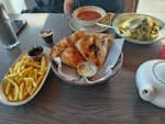 Мы были приятно удивлены. Порции огромные. Еда очень вкусная. Обстановка уютная. Шашлык мягкий, овощи свежие. Очень понравился штрудель. Объелись на ура! Так держать!