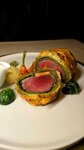Говядина Веллингтон — блюдо из говяжьей вырезки: мясо, запечённое в слоёном тесте.