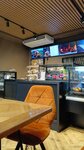 Приятный современный интерьер. Еда, на мой взгляд, не вкусная. Обилие белой муки и дрожжей. Хлеб, как вата безвкусная, с доавками красителя. Но, люди приходят, заказывают пиццу, студенты из соседнего здания тоже захаживают. Для них еда, видимо, норм. Посуда вся одноразовая, хотя в кафе много столиков и хотелось бы посидеть с настоящей посудой и спокойно поесть. В общем, я сюда не ходок, но это моё субъективное мнение.