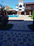 Отдыхали с этом гостевом доме в период с 30.07-09.08.2022. Территория: все чисто, ничего лишнего, зелени достаточно на территории и она не засохшая, а прекрасные хвойники. Двор поделен на 2 части, первая, где находится кухня, бассейн и столики стоят под навесом, а вторая часть, там огромная мангальная зона барбекю, столики под навесом, вы можете пожарить мясо/овощи и посидель в беседке или перейти ближе к номерам, возле каждого номера стоит стол и стулья, мы жили на втором этаже с выходом на мангальную зону, шума не было и тусовок тоже, бассейн чистый, а вечером часам к 21-22 вода ну очень теплая в нем, можно вещи сдать постирать, 100руб или 150 уже точно не помню. Кухня просторная,где можно приготовить покушать и посуды там достаточно, но мы брали и свою. На территории стоит большой холодильник,где можно хранить продукты помимо того,который в номерах еще есть. Номера: номера разные как я поняла уже потом, где-то вагонкой обшиты внутри стены, а где-то покрашены или панели на стенах, но это наверное от категории номера, у нас была вагонка, т.к. бронировали в последний момент. Я очень боялась, что будет запах от вагонки, так как влажность в этих местах, но нет, все хорошо. У нас был 3-х местный номер с доп. местом, это 2-х спальная кровать+односпальная +кресло раскладное, холодильник, кондиционер, шкаф, 2 тумбы возле кровати, телевизор, номер в принципе был нормальный, только одно пожелание, смените пожалуйста простыни или пришейте резинки к ним, через 3 часа сна ты спишь на голом матрасе, так как матрас очень гладкий и простыня съезжает и так было у наших знакомых, которые проживали в соседнем номере. Общая оценка 5, я люблю уют и обращаю внимание на многие вещи и здесь хорошо, главное чистота на территории и чистый бассейн. Да, до моря идти действительно минут 15, кажется долго, но мне показалось нормально. Рекомендовать могу смело этот гостевой дом