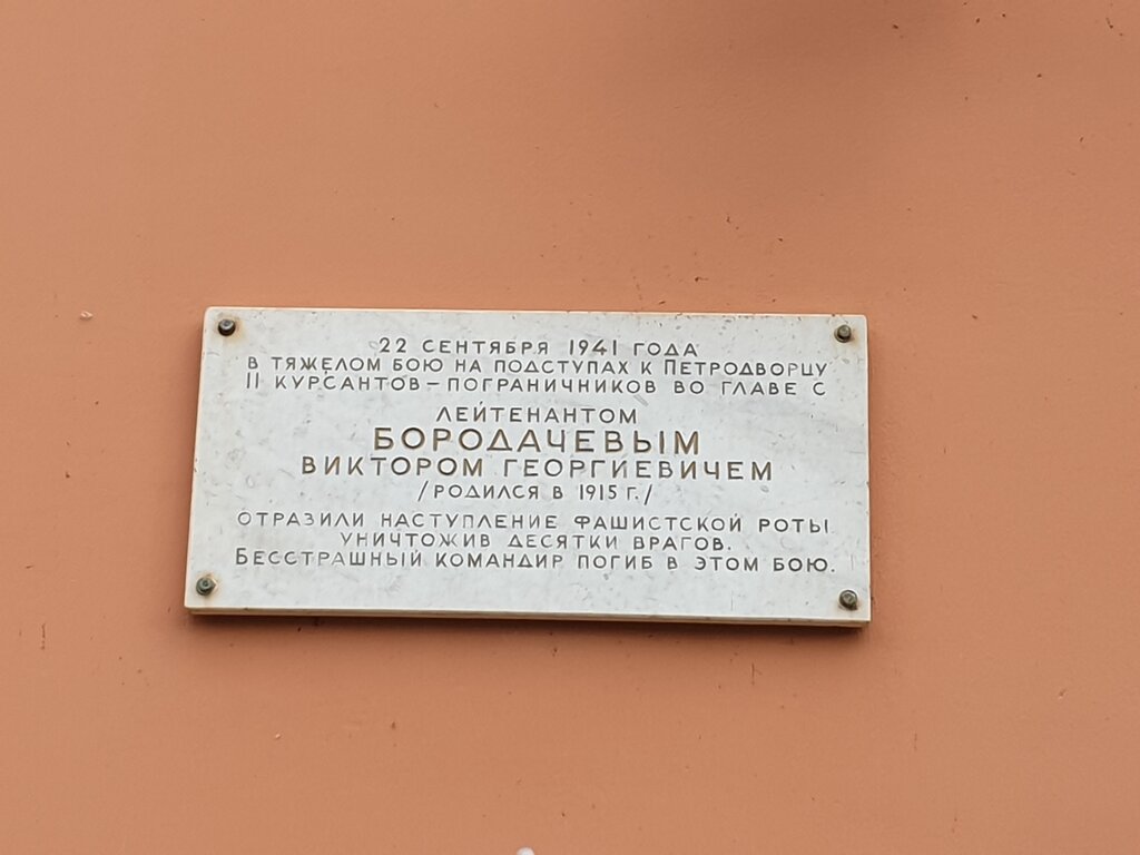 Memorial plaque, foundation stone Лейтенанту-пограничнику В.Г. Бородачеву, Peterhof, photo