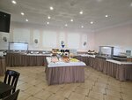 Отдыхали здесь с мужем по социальной путёвке с 1 октября по 18 октября. Несмотря на то, что при заезде была небольшая заминка с заселением (для нас неприемлемо было заселиться в двухкомнатный номер на трёх гостей, с общим санузлом из-за особенностей здоровья мужа - инвалида первой группы), всё в итоге сложилось замечательно. Нам выделили прекрасный двухкомнатный номер, с большим балконом и индивидуальным санузлом. Не знаю, как оборудованы другие номера, но в нашем были холодильник, сейф, два телевизора, душевая кабина с двумя видами душа, фен. По запросу выдали полотенца для посещения бассейна, простыни для визитов в лечебные корпуса санатория. На территорию "Золотого берега", куда, собственно, мы и ехали лечиться, из отеля доставляли автобусом (пешком минут 10). Уборка ежедневная. Питание - шведский стол, выбор блюд большой, но по качеству на четверочку с минусом. Много сезонных овощей, молочные продукты, рыба. Персоналу отдельное спасибо, очень приветливые, добросовестные люди там трудятся. Вообще, отель очень уютный, расположен удобно, никакого шума с улицы не долетает. Во дворе подогреваемый бассейн, довольно большой. Будем рады вернуться туда снова.