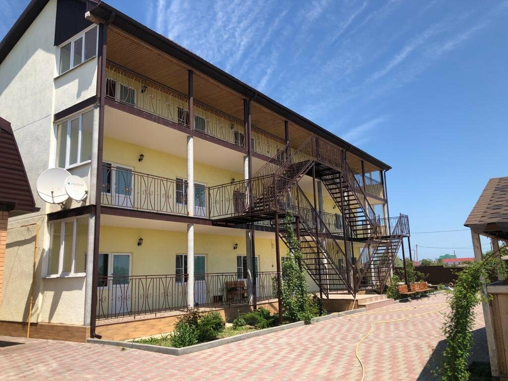 Отличное соотношение цена-качество. Уютный комфортный гостевой дом в очень тихом месте. Хорошие номера, чисто как дома, ухоженная территория, небольшой бассейн с чистой водой (для детей и взрослых), продуманная кухня со всем необходимым, большой холодильник, питьевая вода из скважины, мангальная зона - в общем, все, что нужно для комфортного отдыха. Для детей есть игровая площадка на территории гостевого дома. Очень доброжелательные хозяева. До моря минут 15 неспешным шагом, на машине 5 минут. Пляж чистый, без мусора, вход пологий, песок в воде. Пляж очень атмосферный благодаря высокому берегу, отличные виды на закат. Рекомендуем для спокойного семейного отдыха, особенно для тех, кто устал от городского шума и суеты.