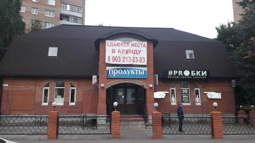 Под одной крышей разместились два небольших магазинчика.Это "Продукты"-алкогольные и сопутствующие товары и "Пробки"-пиво с большим асортиментом вяленой и сушоной рыбы и морепродуктов.Чисто.Товар разложен удобно.Персонал доброжелательный и отзывчивый.