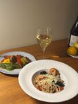 Не все было в наличии, из того, что было в меню, может связано с тем, что не сезон и людей не много. Заказывала овощи на гриле и пасту с морепродуктами. Паста вкусная, морепродуктов достаточно👌 Овощи тоже вкусные, поджарены, как нужно, единственное - в составе два острых перца целиком🌶️ не понимаю, зачем?! лучше были бы помидоры или баклажаны, но в целом хорошо, вкусно👍
