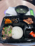 Зашли с мужем на фуд-корт в трк «Лето». Выбор пал на ресторан «Кореана». Нам предложили комбо на обед: горячее на выбор, салат, десерт и бульон. Мы выбрали говядину с овощами на горячее. Мясо во вкусном соусе, просто тает во рту. Считаю, что это был удачный вариант. Хотя и свинина под соусом выглядела аппетитно. Также были закуски: кимчи, грибы шитаки и морковь по корейски. Мы все это обожаем. Поэтому кайфанули. Кстати, кимчи не очень острое. Можно спокойно есть, не обжигаясь. На десерт дали кусочек сладкого ролла с киви. Изысканный и легкий десерт для красивого завершения обеда. Рекомендую этот ресторан. Еда свежая и вкусная