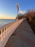 К мояку не подойдёшь со стороны набережной. В принципе всё заканчивается у кафе Маяк. Есть небольшая смотровая площадка у кафе и всё. Если кто решит прогуляться по набережной до маяка, запаситесь водой,после пляжа (чегото там морей) ни одной торговой точки.