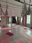 Студия супер атмосферная! Была на аэро-стретчинге и аэро-йоге. Все в приятном розовом цвете. Студия очень удобно расположена — прямо около метро. Тренер Оля все хорошо объясняет и помогает, если не получается.