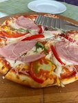 От дворового кафе одиночеи много не ждёшь. Подкупила по отзывам хорошая детская. Но неужели сложно на такой маленькой площади махнуть пару раз шваброй после каждого гостя??? Полы в карлях сока, волсня. В туалет нет туалетной бумаги, зато раковина золотая 🤦🏻‍♀️ Мебель мягкая грязная! Это на персонале! Или на руководстве должно быть. Чистота зала превыше всего! Пиццу принесли тяп-ляп. Так нарубить колбасу и помидоры в нее это уже не про кафе. Я дома своим сервирую лучше… Вообщем нет. И не надо было пытаться! Фото подтверждают