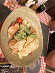 Первое, что заметили - это неприятный запах в зале. Остались, потому что были голодные как волки. Салат с морепродуктами и с авокадо и креветками были неплохи. Карбонара не понравились. паста с рыбой была явно не досолена, тоже не понравилась. Фирменный десерт это ужас. Красивый только внешне. На вкус это кошмар. Ребята, вывеска названия устаревшая, абсолютно отталкивает от посещения. Надо что-то менять. К вам пришли только прочитав отзывы. В туалете тоже не особо чисто. Единственное спасибо нашей официантке. Видно было, что человек старается.