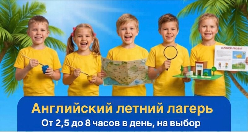 Летняя программа для детей 6-13 лет. Погружение в английскую среду. Интенсивы, квесты, мастер-классы, разговорные клубы, прогулки с друзьями. Полностью на английском. Продолжительность - 5 часов в день. Можно выбрать любые даты, нет смен.