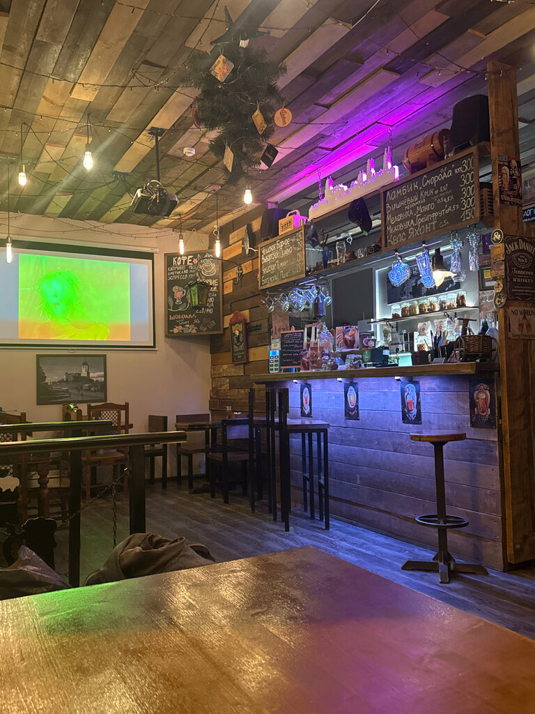 Атмосферный бар, очень располагающий к отдыху, общению и наблюдению за дождем или снегом за огромными окнами под мировые рок хиты. По ощущениям это бар из книг Макса Фрая. В любой визит в Выборг стараемся здесь побывать. Согреваемся отличными глинтвейнами, еда вкусная, обстановка приветливая и теплая.