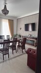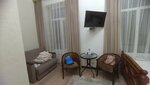 Начну с того что номер бронировали за сутки, нам предстояло проехать больше 1000км и целенаправленно ехали в эту гостиницу. При бронировании озвучили что номер на двух взрослых и ребенка будет стоить 3600, но по приезду оказалось что номер 3500+500 за доп место, и наотрез отказываются что могли нам дать другую информацию ( читайте отзывы и делайте выводы сами, подобные ситуации у людей были). Приехали мы после 8 вечера и соответственно покушать нормально не смогли, нам предложили еду в контейнерах которую оставляет повар, ну так скажу - пойдет. Кстати весь ужин нам обошёлся в 1090р ( макароны с 2мя небольшими котлетками - 2 порции, гречка с котлетками и салат на подобии крабового). Что могу сказать из + +Мягкий матрас, что как правило не маловажно +Парковка под окнами +Хороший ремонт +Хорошее расположение + Есть кондиционер + Есть чайник с чайными приборами и холодильник Из минусов- - обманули с ценой номера -освещение в номере очень тусклое, плюсом горели не все лампочки на люстре (8 номер) - панорамные окна в пол, без возможности открывания ( считаю что это минус, т.к с кондиционером не все дружат) -перебои с водой в душе, не знаешь как ее настроить, то слишком горячая то холодная - телевизор который ничего не загружает, по-видимому из за плохого интернета - диван который используют как доп место это просто ужас, спать на нем не возможно твердый чувствуешь как все пружины под тобой ходят, поэтому пришлось спать втроём на большой кровати Что могу сказать, общее впечатление осталось не очень, ехали по отзывам, сама гостиница так сказать с претензией на роскошь...а по факту очень много недочётов в обслуживании, в самих номерах и кстати мои белые носки от хождения по номеру стали не сказать что черные но грязные, а заселили нас в якобы чистый убранный номер, как то так...