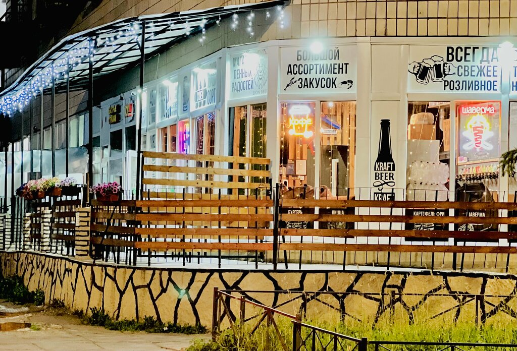 Приятное место. Цены приятные, но уже поднялись. Ассортимент богат выбором пива, Сидора и других напитков. Помимо всего, можно заказать шаверму. Выбор ингредиентов большой, но шаверма на любителя. Лично мне понравилась на 3,5/5. Раньше была лучше, и больше, и сочнее.