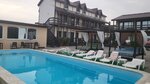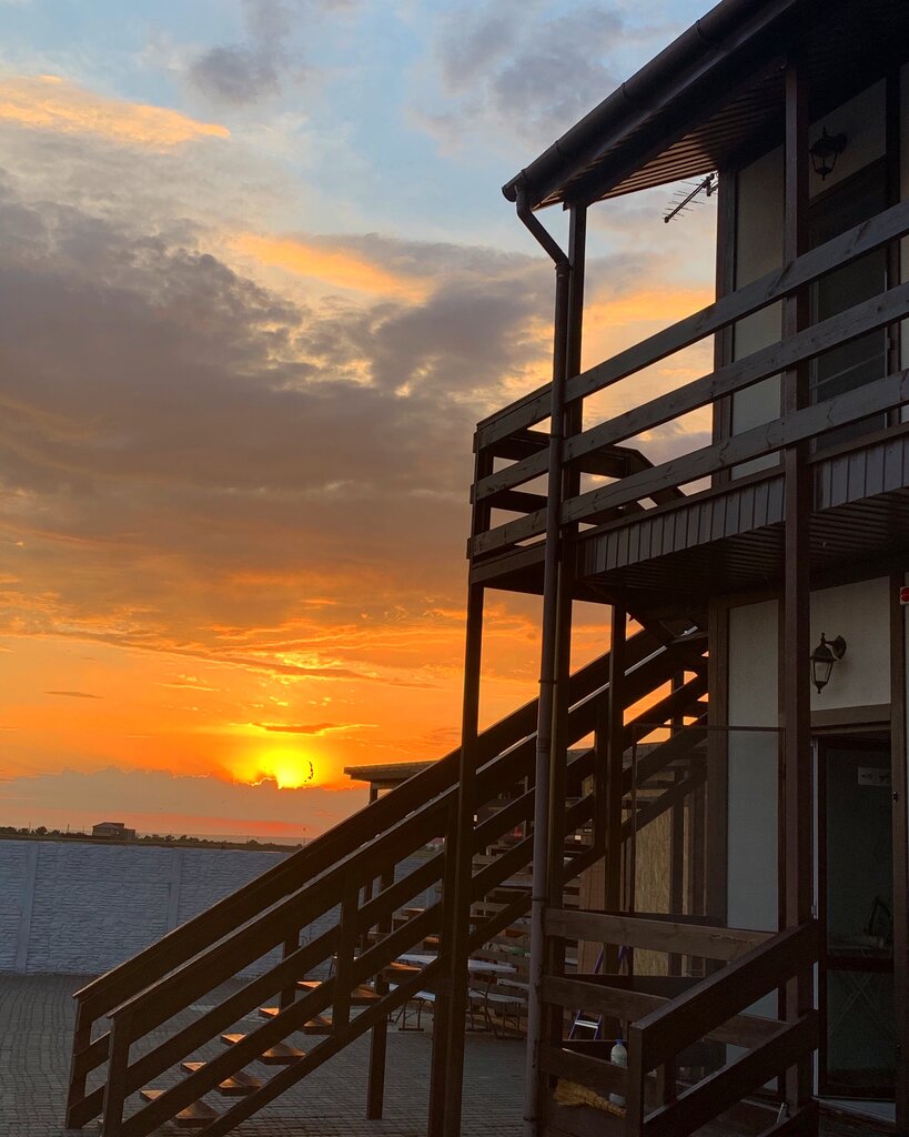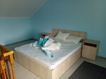 Гостевой дом с различными номерами, на 2 или 3 человека. Имеются двухуровневые номера, здания свежевыстроенные, внутренняя отделка выполнена в некотором стиле "арт", автомобили на внутреннюю территорию не пускают. Имеется пресный бассейн, общая кухня, впрочем, посуды на ней явно недостаточно, так, что, если соберетесь, посуду лучше готовьте собственную. Из минусов-периодически воняет из прилегающего лимана тухлятиной и периодически пропадает электроэнергия, и относительно далеко до моря.