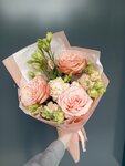 Состав букета: - Хризантема Ханимун, - Альстромерии, - Пионовидные кустовые розы. Заказывайте с уверенностью – ваши цветы приедут свежими и красивыми Состав согласовываем индивидуально, исходя из сезонности и актуальности.