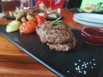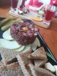 Пиво для его бюджета и по вкусу соответствует, нормальное российское, тем кто балован импортом то ему не сюда. Взяли тартар из говядины, очень нежный и хорошая порция вкусный, тут 5ка, только я бы на месте повара добавил два желтка перепелиных яиц, один моловато, и ещё мелко нарубленный репчатый лук рядом для желающих добавить. Для любителей не зож достойная грудка курицы в тесте тонкого слоя. Отличный чай пуэр и ройбуш с вишней. Заманил ещё сэт из настроек, которые попробуем в следующий раз. Снижает оценку интерьер и вертикальные спинки стульев, не удобно, сидишь в тонусе не откинуться не расслабиться, тут я бы посоветовал хозяивам пойти по пути формата программы Ивлева "на ножах" касаемо интерьера, кухню трогать пока не надо, особенно поваров, они делают это место!