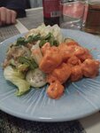 Если бы можно было поставить 10 звёзд поставила б) Сегодня с мужем посетили данное заведение и были приятно удивлёны. На входе нас встретила девушка хостес, спросила сколько нас человек, предложила столики на выбор, так же дала меню. Цены демократичны, не дёшево и не дорого, но после того как нам принесли первое блюдо, мы поняли, что они стоят каждой копейки) Шикарный салат с курочкой карри, салат с креветками, а ризотто с креветками и стейк сёмги просто отвал всего. Чай с облепихой в самое сердечко. На десерт взяли с собой авторский чизкейк. Он очень нежный и просто тает во рту. Рекомендую к посещению)))