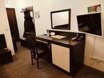 В номере с собственным санузлом, туалет, раковина, душевая кабина, халат, фен, набор полотенец, шампунь, гель для душа, мыло, зубной набор. Wi-Fi, телефон, ЖК-телевизор, стол, стул, шкаф, прикроватная тумбочка, зеркало
