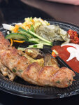 Люля-кебаб из курицы с гарниром, салатом и соусами