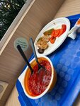 По моему мнению, обслуживание плохое, работают без перчаток с длинным маникюром который лезет в тарелку с едой. Мало приятного. Еда за эту цену, невкусная. Сметану к борщу подали на картонке без бортов, которую невозможно донести никуда. Понимаю, почему тут некогда нет очереди. Прошу руководство обеспечить свою точку расходниками для работы и работников. Иногда проводить дегустацию еды, во второй раз сюда не прийду. По моему мнению, я далеко не первая которая пришла к этому выводу. Осталась голодна.