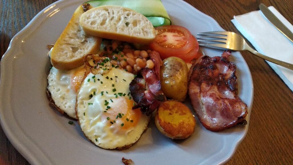 A small, cozy place, breakfast as in the photo costs 5.5 euros, latte coffee 2.9 euros.