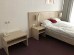 Очень хороший, просторный номер. Чисто. Белое белье, полотенца. В номере есть чайник, чай, две воды по 0,3. (нам не хватило, но на первом этаже есть кулер. Хотелось бы на этаже). Фен, зубные щетки, мыло, шампунь, бальзам для душа. Одноразовые тапочки. Халат почему то по требованию. В отеле есть сауна и кафе, но мы не ходили ( отзывы были противоречивые). Завтрак роскошный. Было все и на любой вкус: каши, выпечка, хлопья, яйца трех видов, сосиски, нарезка, овощи, фрукты, чай, кофе, творожки, соки, напитки. Шампанского не было)) ( В городе поздно начинают продавать алкоголь). Рядом Пятёрочка. Напротив шашлычная (нам понравилась). До центра не близко, но были на машине (не критично). Возле здания стоянка машин на 15. Единственно, что было не идеально - очень интенсивное движение по дороге возле гостиницы. И глубокой ночью и утром. У нас окна выходили на дорогу, так что было не тихо ( как писали в отзывах). Я сплю при любом шуме, поэтому впечатления мне не испортило. Выезд в 12.00, мы опоздали на 5 минут и за это время нам позвонили дважды (имейте в виду). В следующий раз остановимся тут обязательно.
